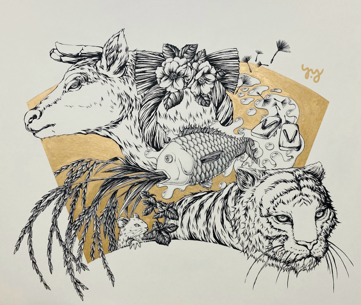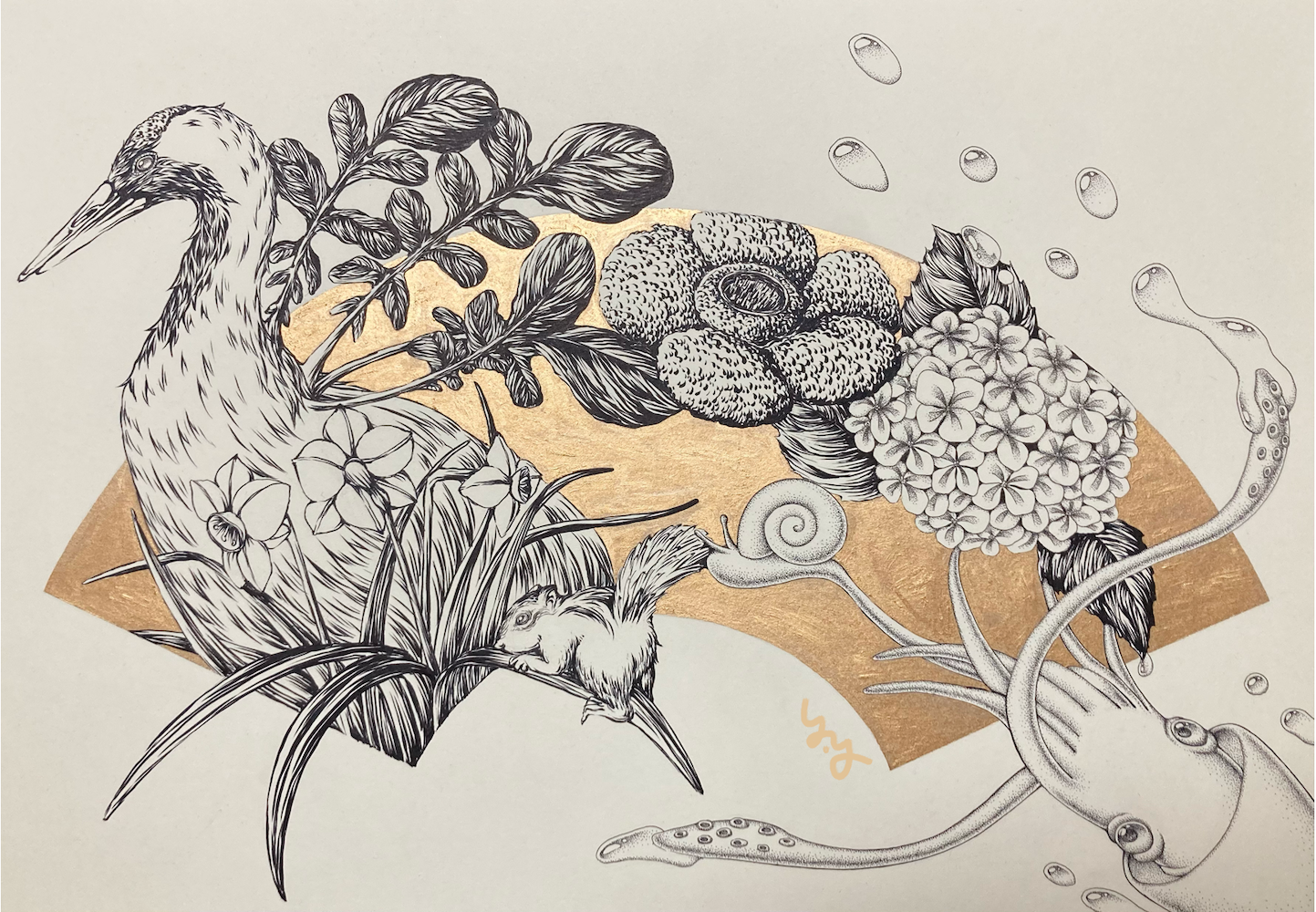 主に動植物を描いた、筆ペン・ミリペンによる絵画作品を展示します。